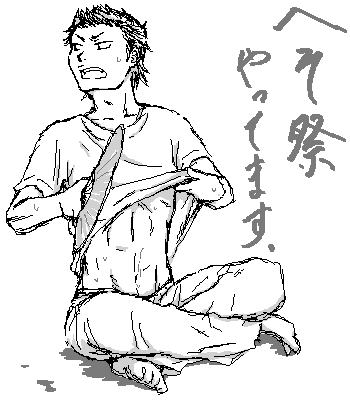 「へそ祭」と携帯にメモってあって激しくビビったので、描いてみました。へそへそ。